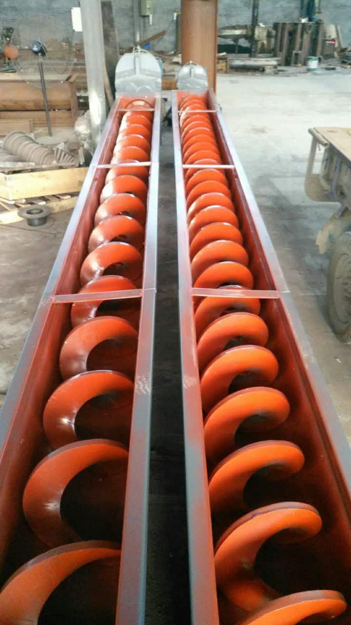 4.輸送量大,距離長(zhǎng)。 是相同直徑的傳統(tǒng)直徑螺旋輸送機(jī)的1.5倍。